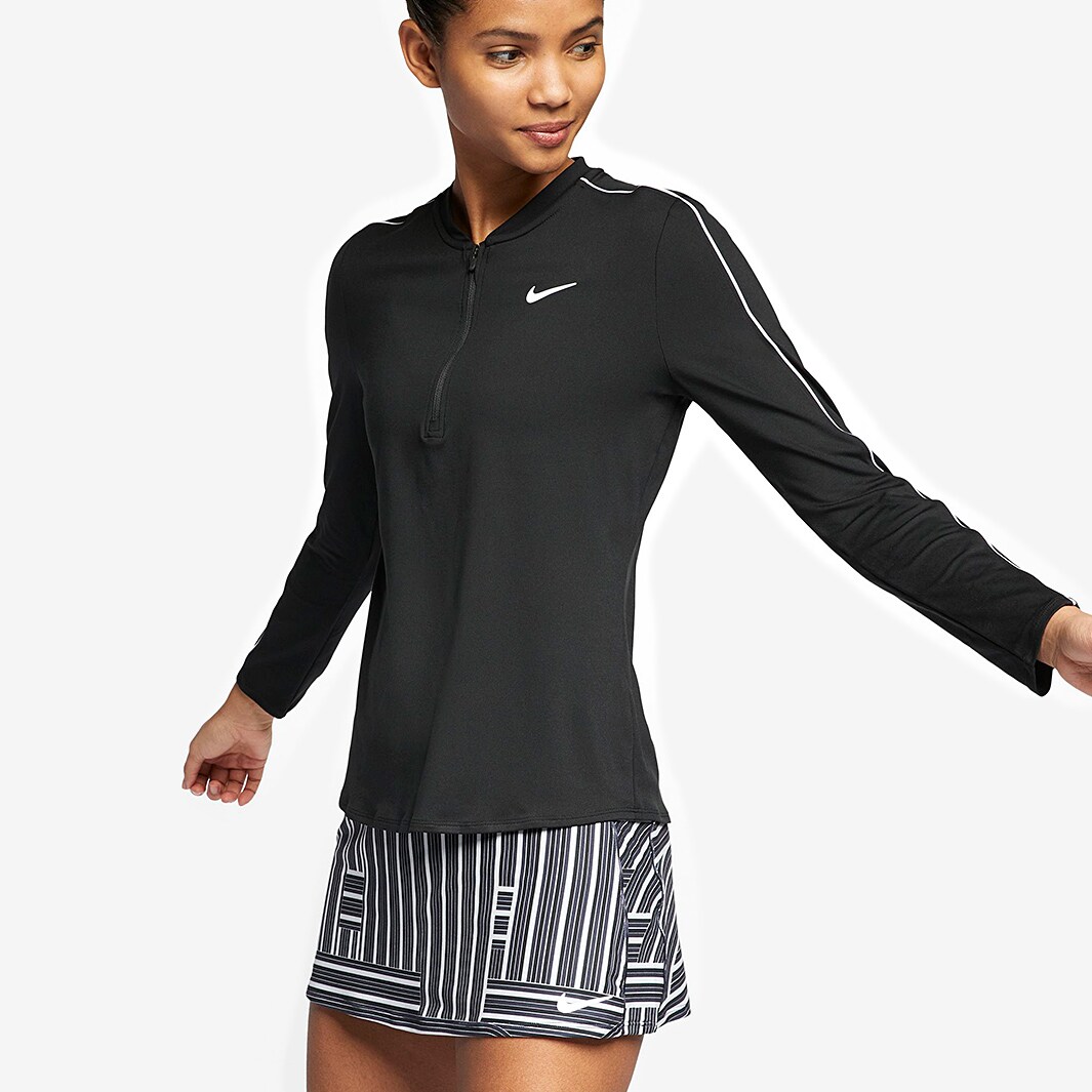 Nike Womens Court Dri Fit Longsleeve 1/2 Zip Top Black/White Womens