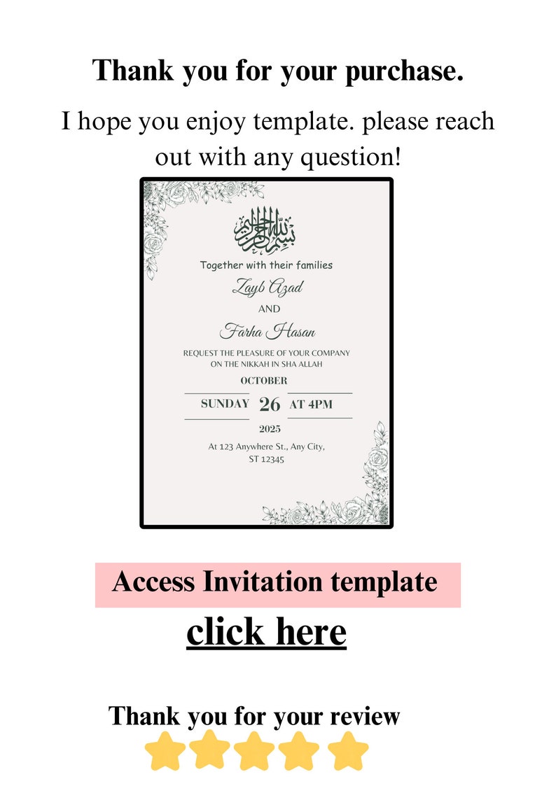 Editable Nikkah Invitation Template Custom Muslim Wedding Etsy
