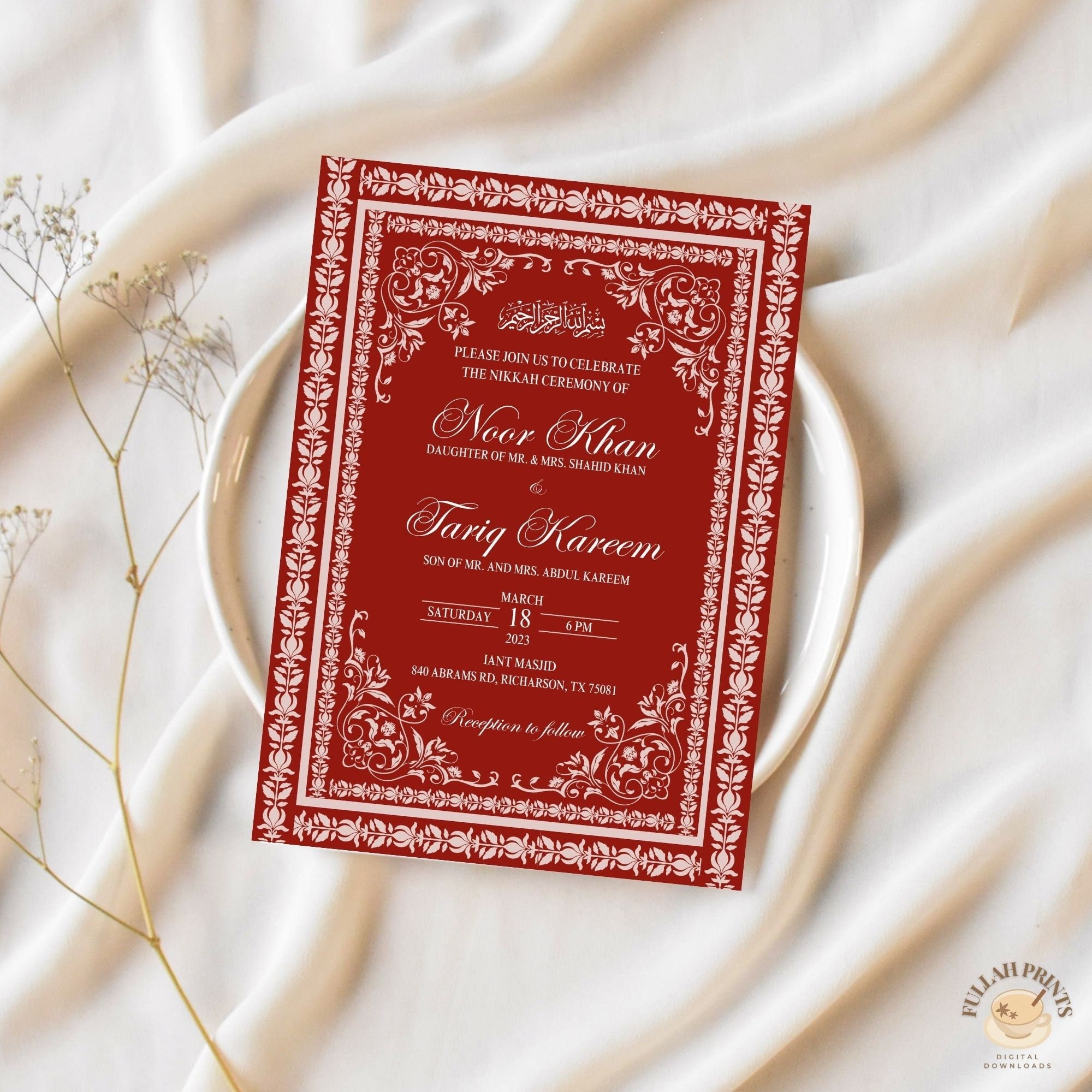 Red Elegant Nikkah Invitation Maroon Nikkah Invite Nikkah Invitation