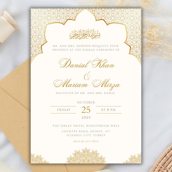 Editable Canva Nikkah Invitation Template Customizable Islamic Wedding