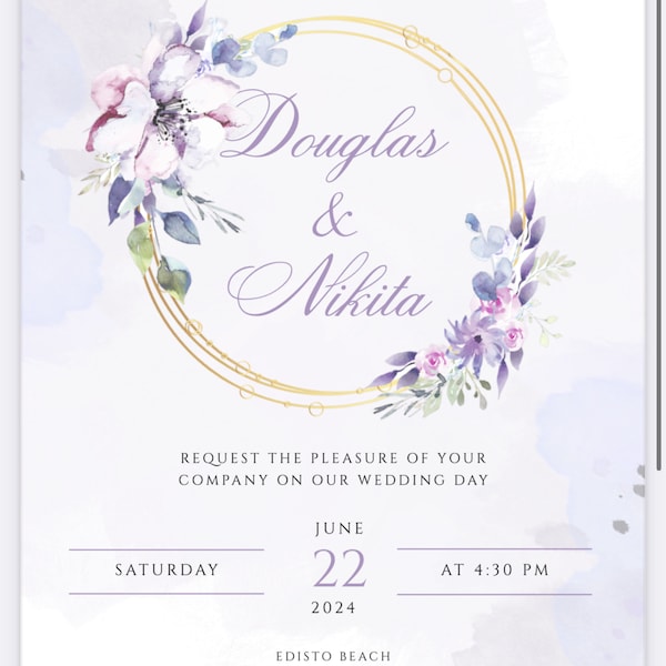 Editable Islamic Nikkah Invitation Template Lavender Floral Muslim