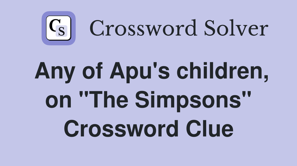 Any of Apu #39 s children on quot The Simpsons quot Crossword Clue Answers