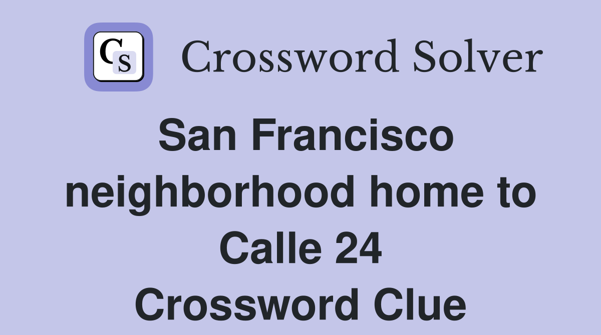 San Francisco neighborhood home to Calle 24 Crossword Clue Answers