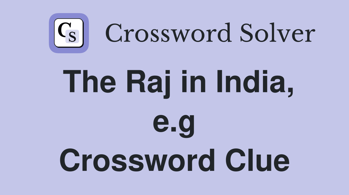 The Raj in India e g Crossword Clue Answers Crossword Solver