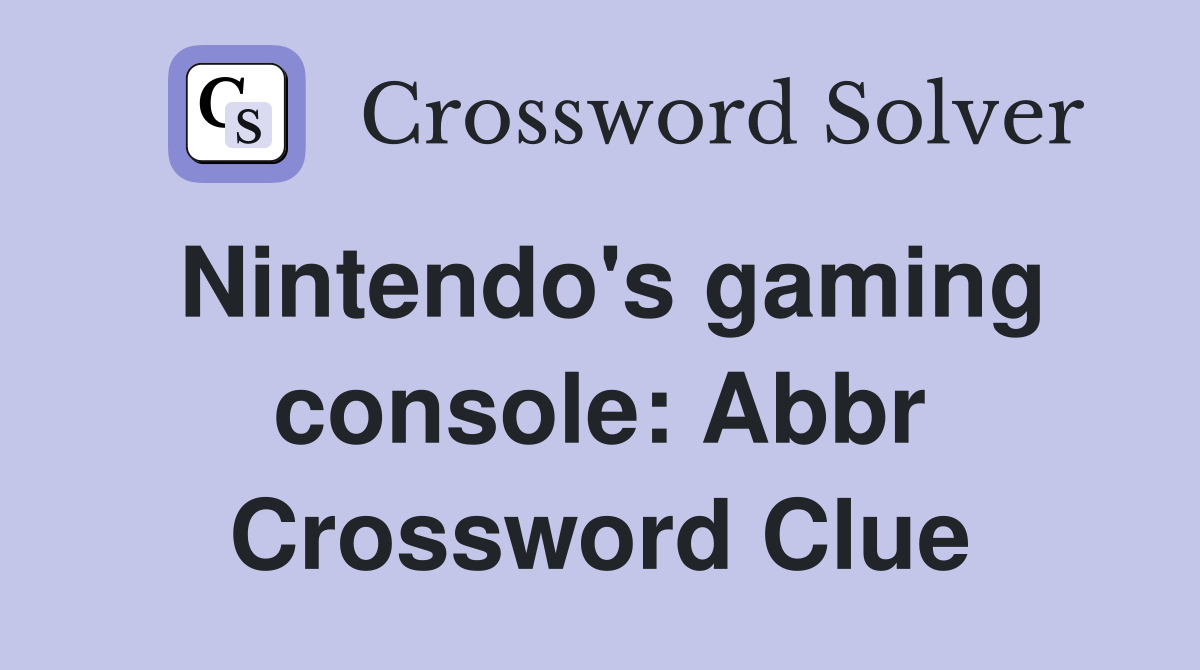 Nintendo s gaming console: Abbr Crossword Clue Answers Crossword