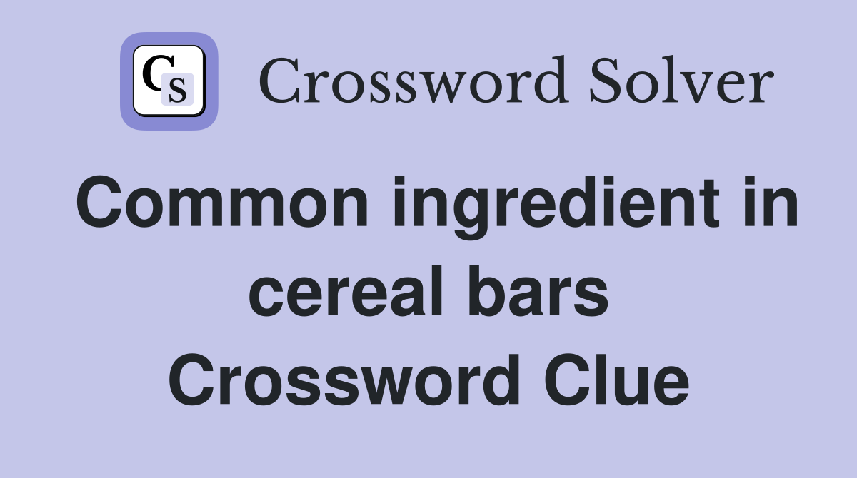 Common ingredient in cereal bars Crossword Clue Answers Crossword