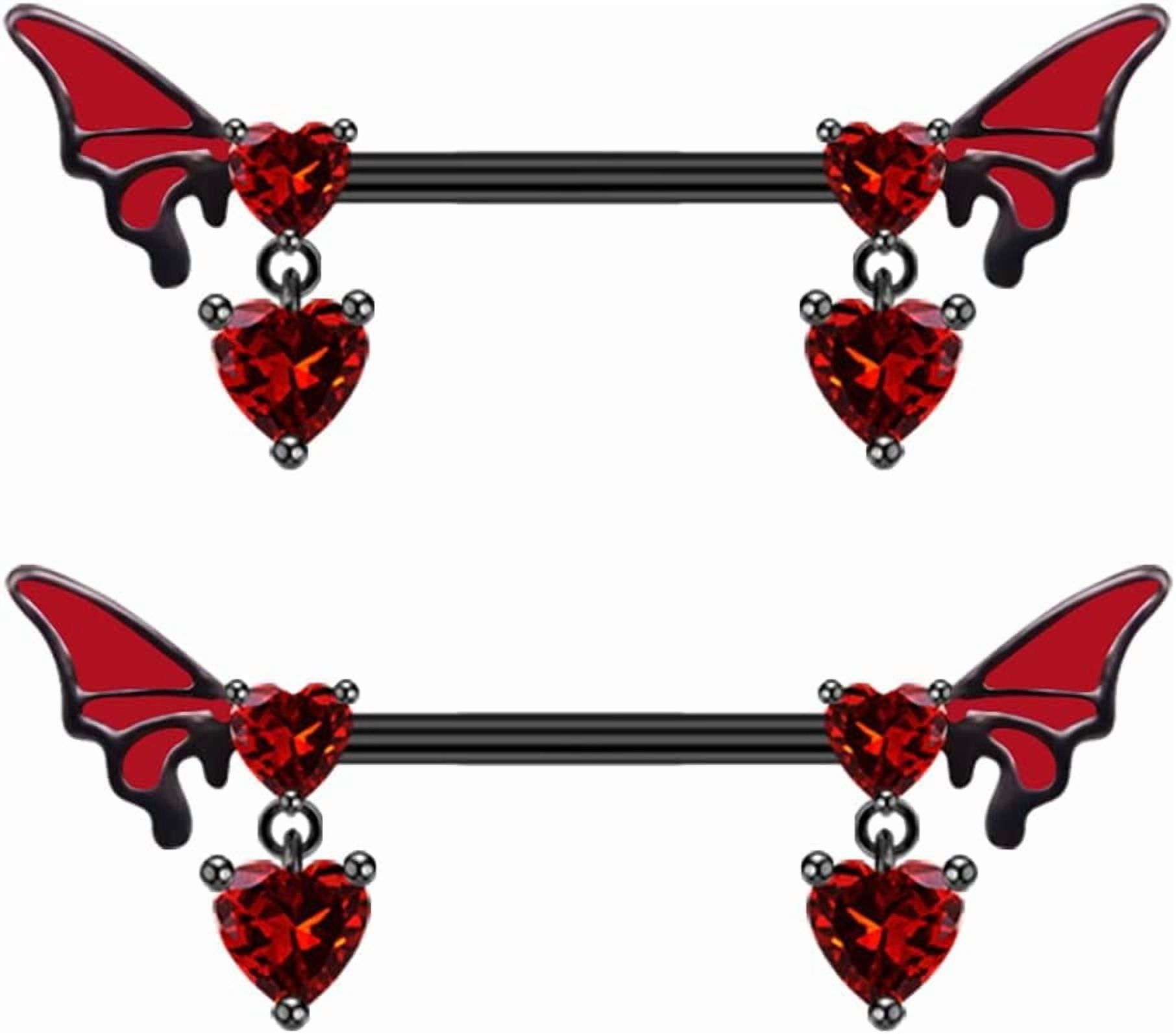 14G Punk Best BatRings Stainless Steel Dangle Heart Red Crystal