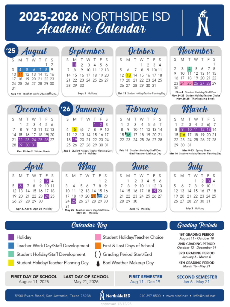 2025 2026 Nisd Calendar PDF Higher Education