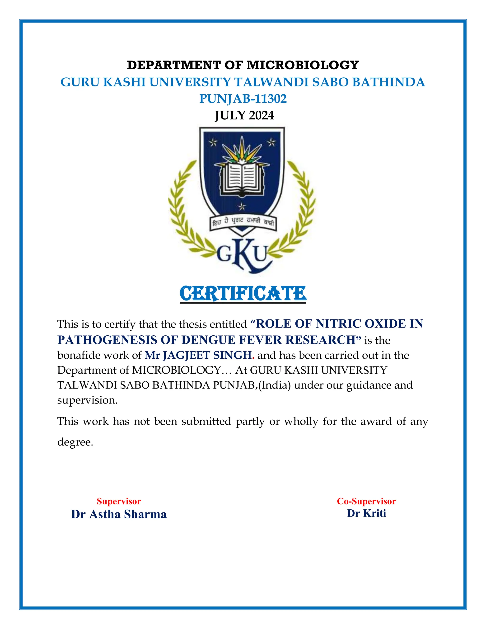 ROLE OF NITRIC OXIDE IN PATHOGENESIS OF DENGUE FEVER PDF