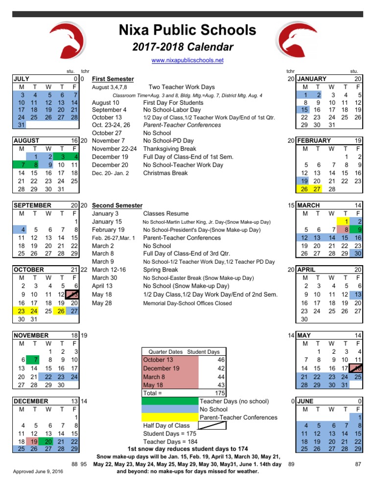 Nixa Public Schools: 2017 2018 Calendar PDF Public Services Schools