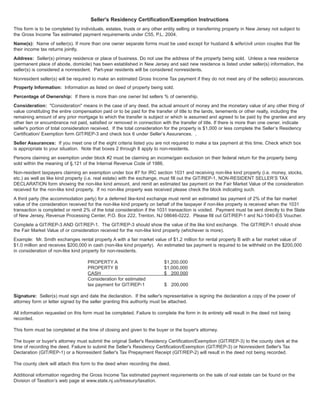 New Jersey Seller #39 s Residency Certification/Exemption