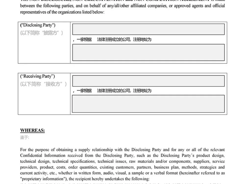 NNN agreement (Eng/Mandarin) to protect your company #39 s interest in