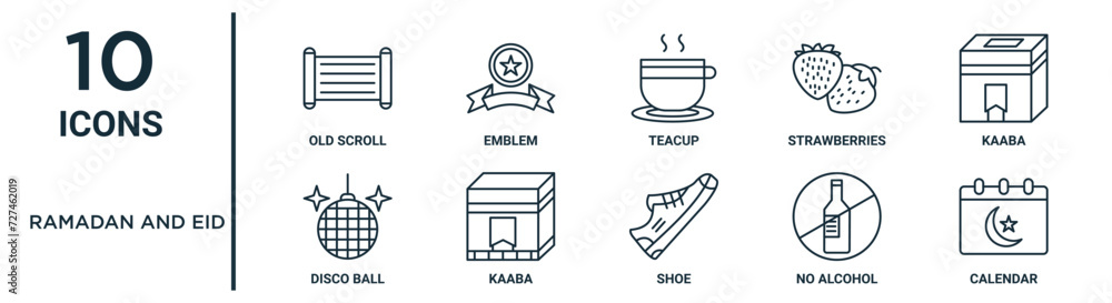 ramadan and eid outline icon set such as thin line old scroll teacup