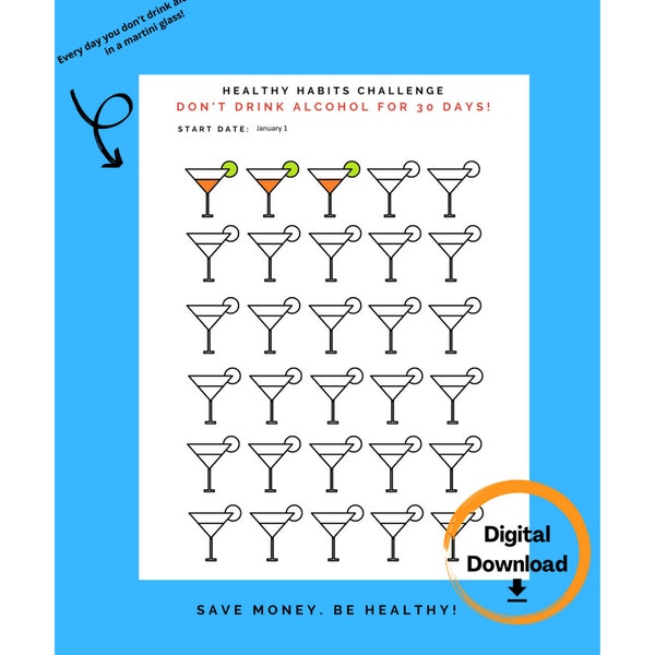 Alcohol Tracker Printable / 30 day No Alcohol Challenge / Alcohol