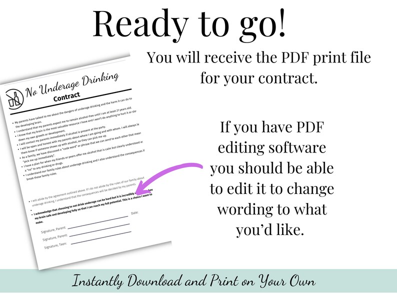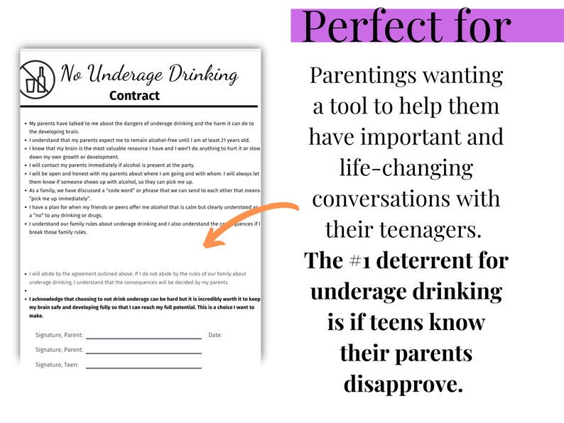 Teen Underage Drinking Contract Template Digital Download Teenager