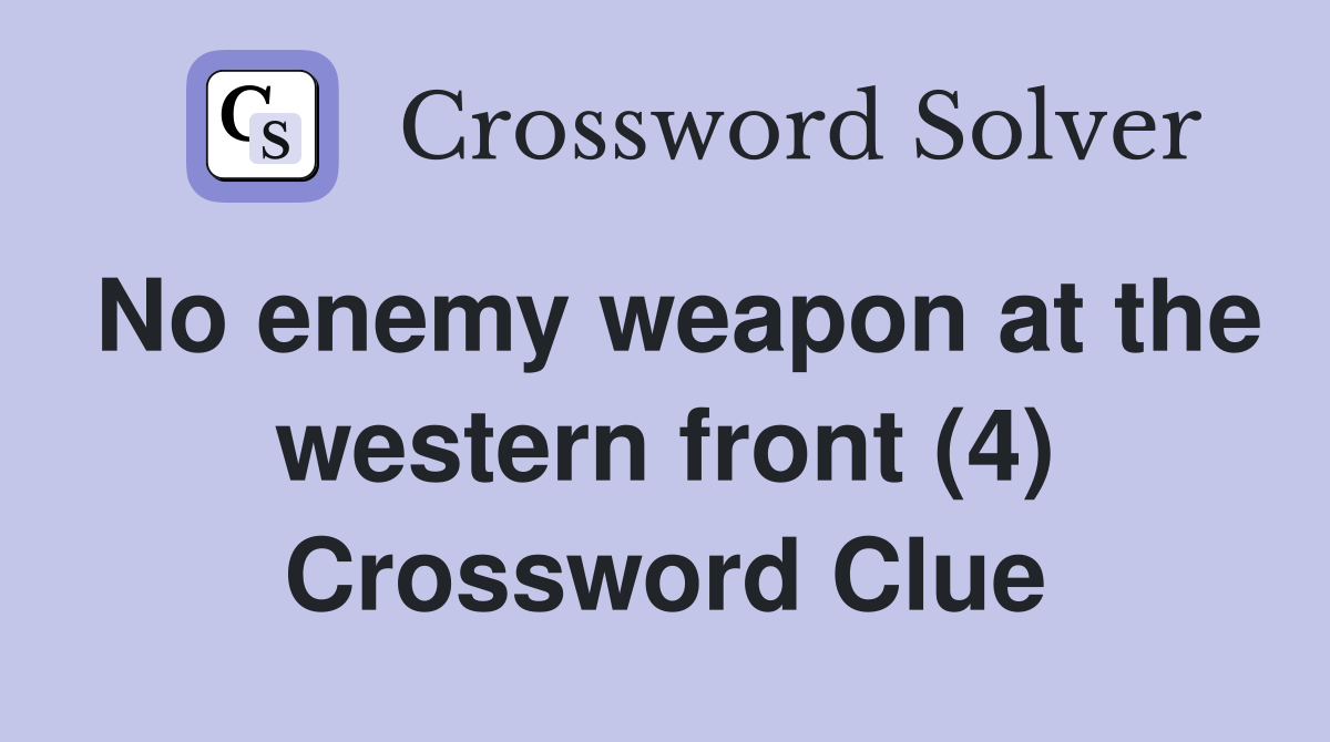 No enemy weapon at the western front (4) Crossword Clue Answers