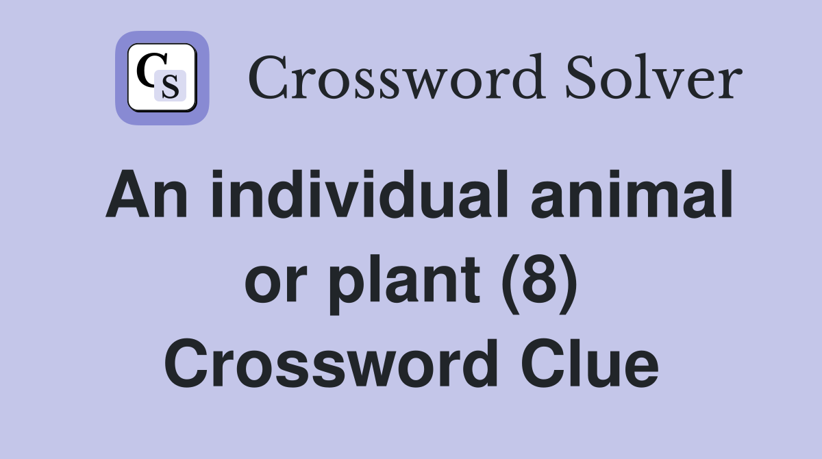 An individual animal or plant (8) Crossword Clue Answers Crossword
