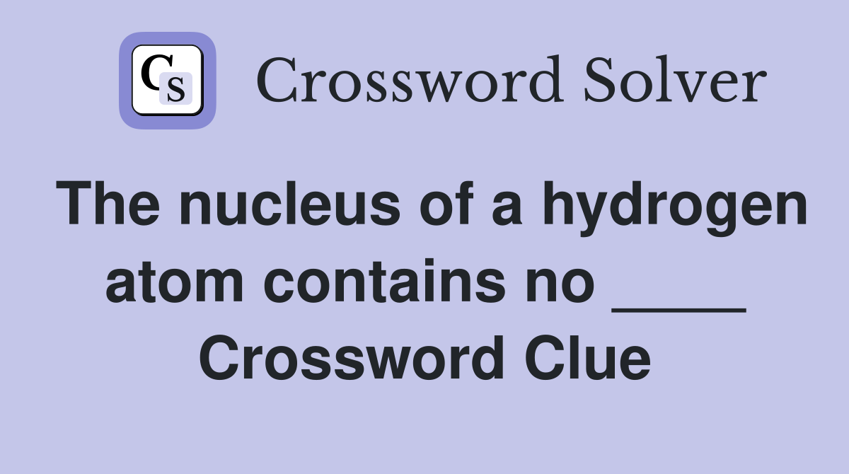The nucleus of a hydrogen atom contains no Crossword Clue