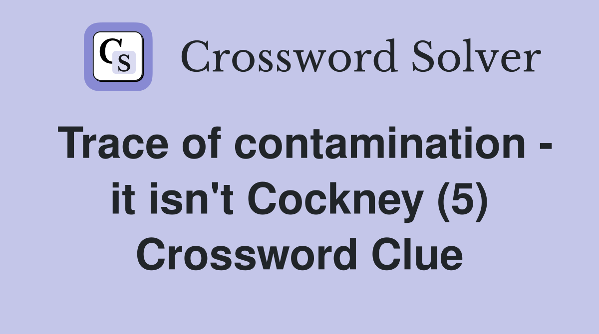 Trace of contamination it isn #39 t Cockney (5) Crossword Clue Answers