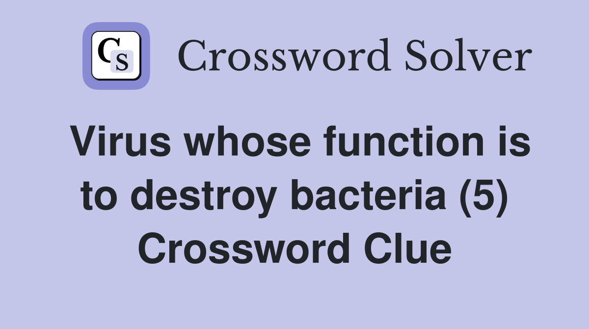 Virus whose function is to destroy bacteria (5) Crossword Clue