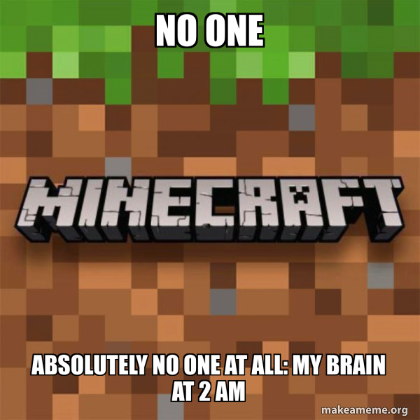 No one Absolutely no one at all: My brain at 2 AM Minecraft Meme