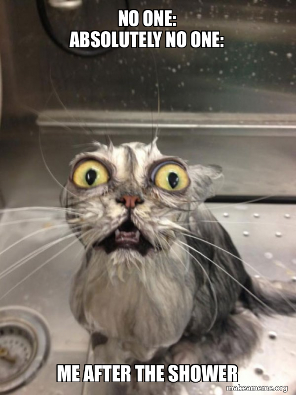 No one: ABSOLUTELY no one: ME AFTER THE SHOWER Cat bath Meme Generator