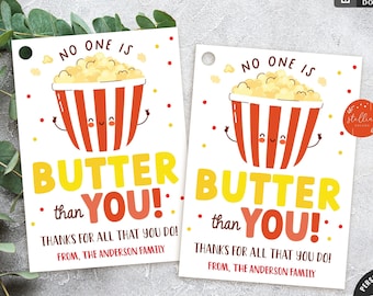 Editable Popcorn Gift Tag No One is Butter Than You Tag Nurse Teacher
