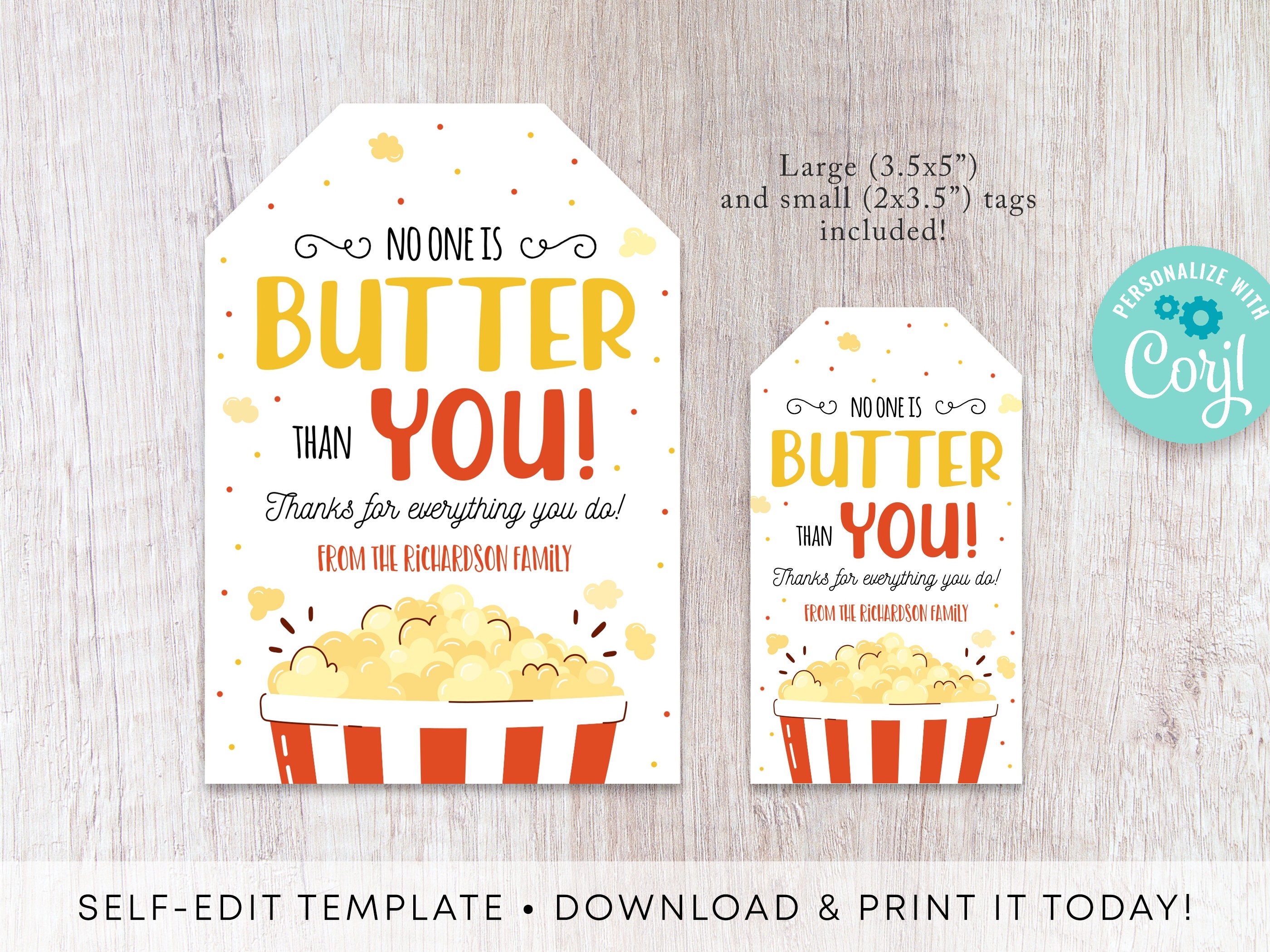 No One is Butter Than You Popcorn Gift Tag Editable Thank You Gift