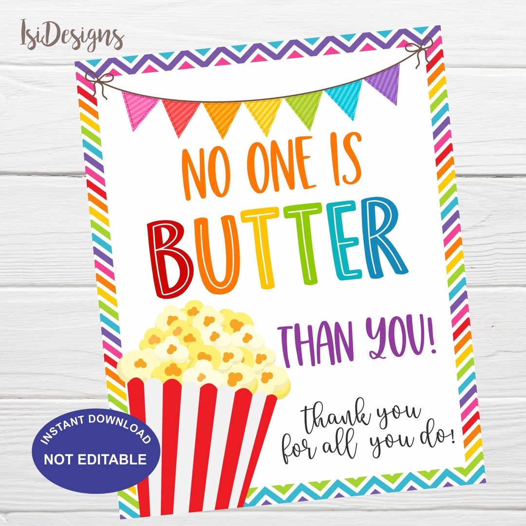 No One is Butter Than You Popcorn Gift Tag Editable Thank You Etsy