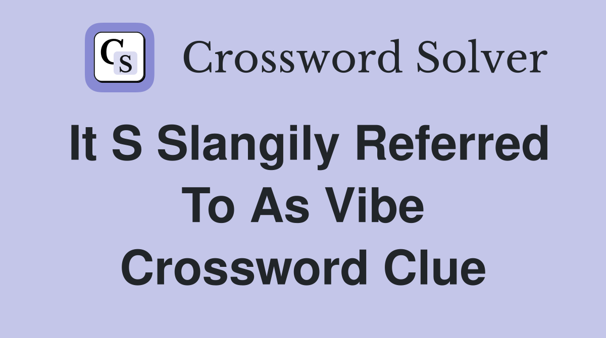 It s slangily referred to as vibe Crossword Clue Answers Crossword