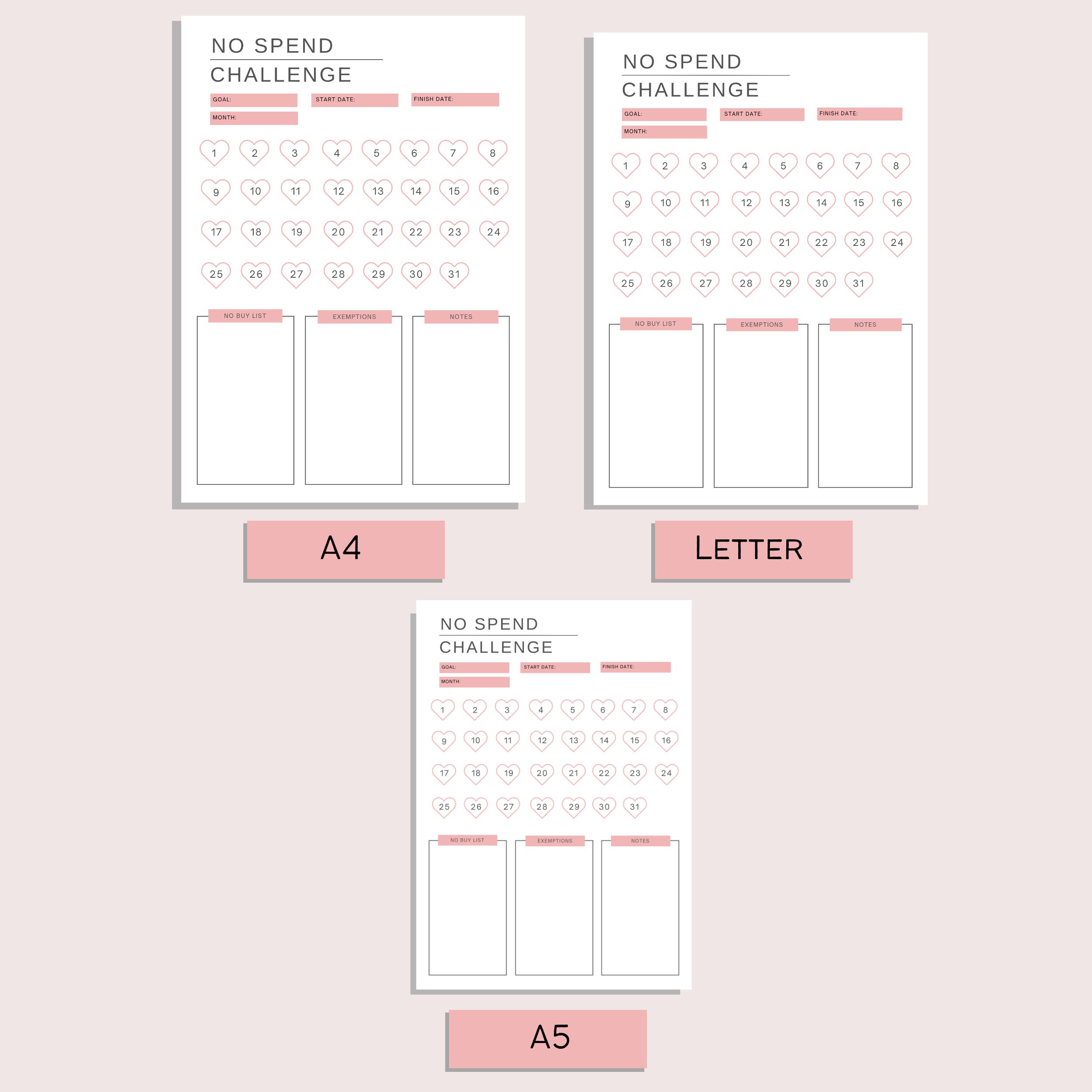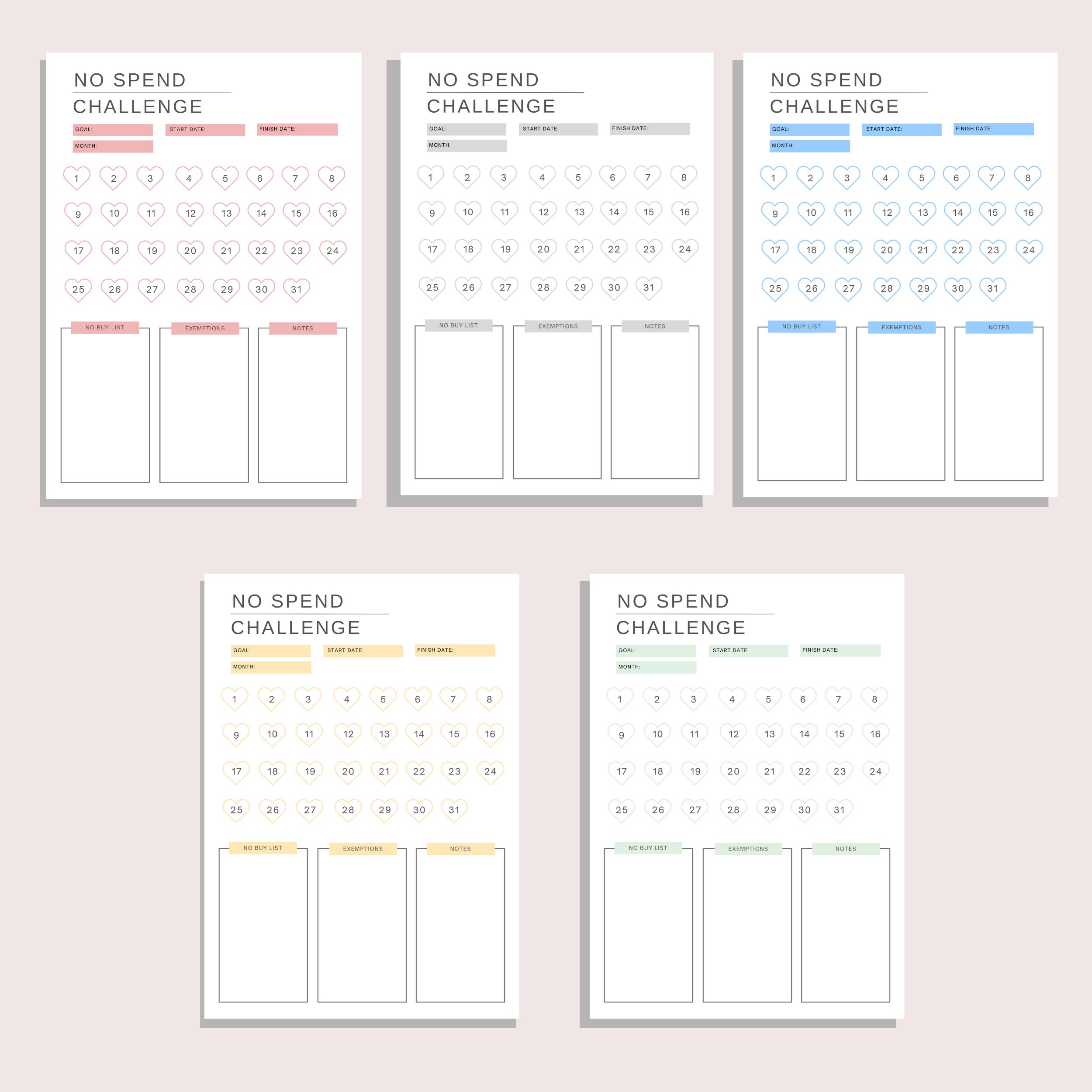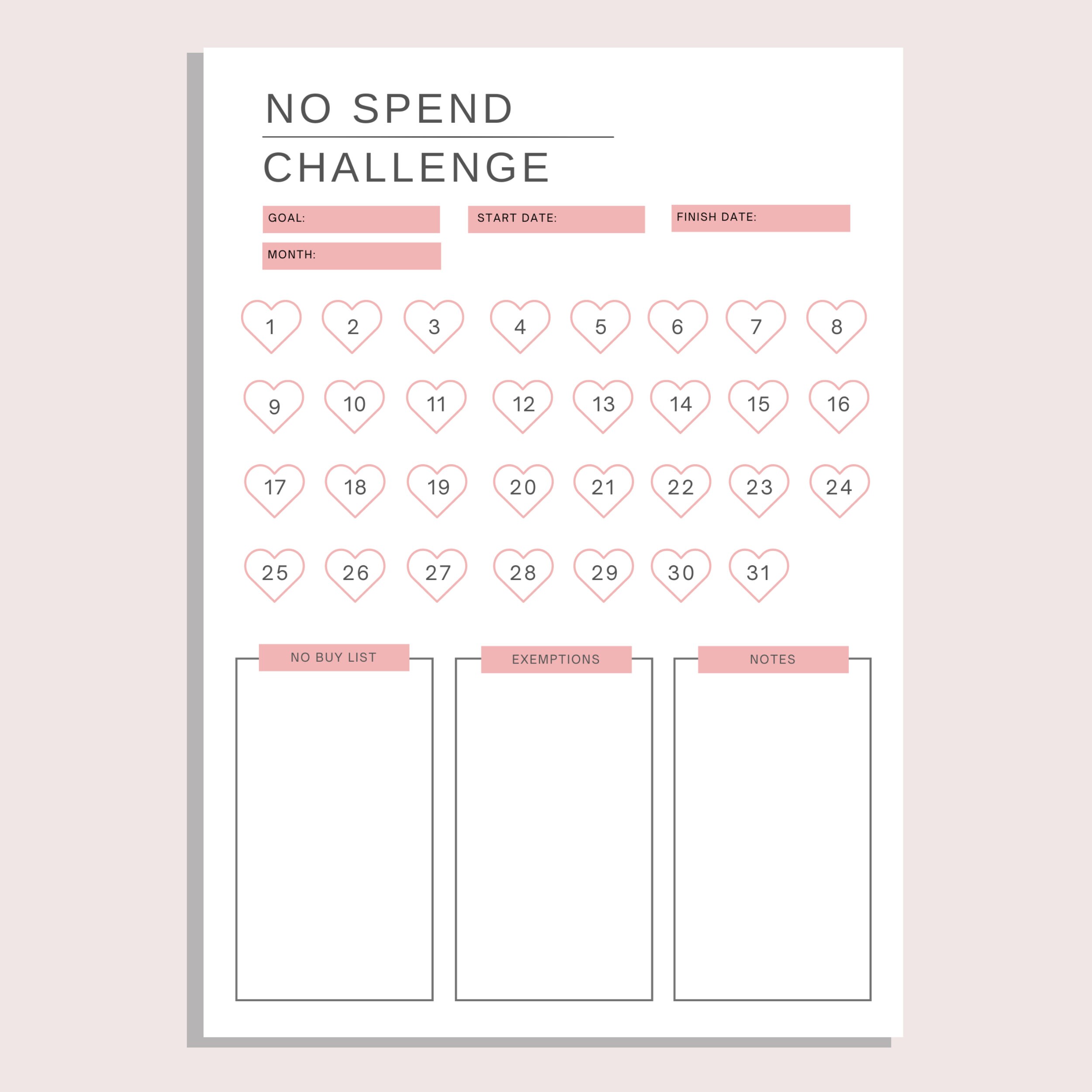 Free Printable No Spend Challenge in PDF PNG and JPG Formats · InkPx
