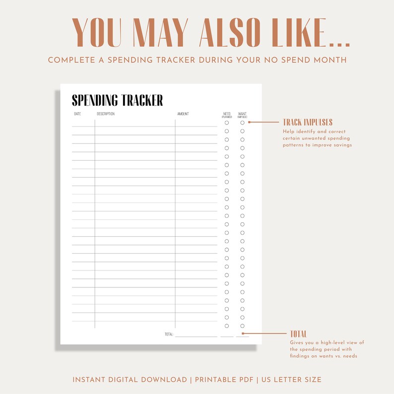No Spend Month No Spend Challenge Tracker Monthly 30 day No Buy