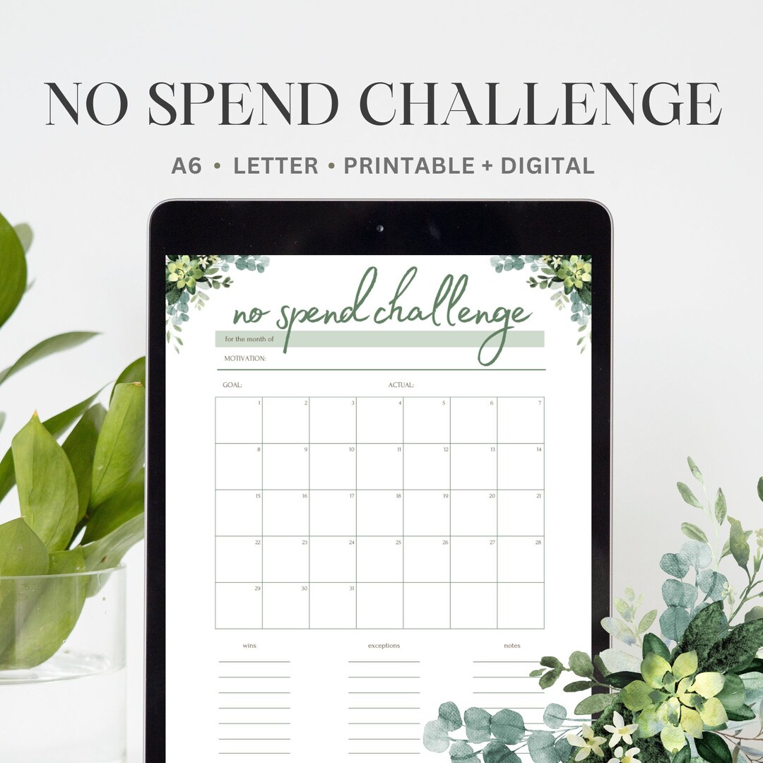 No Spend Challenge 1 Month No Spending Challenge Printable No Spend