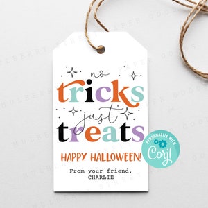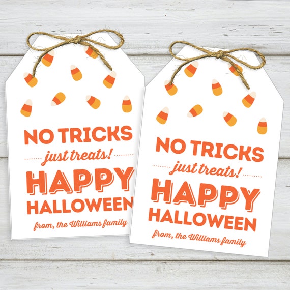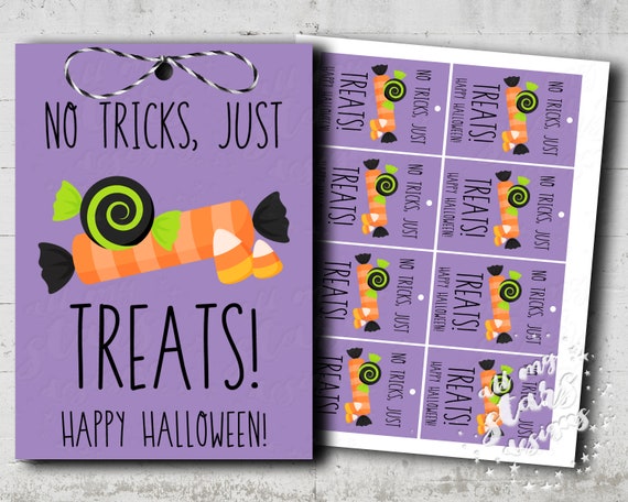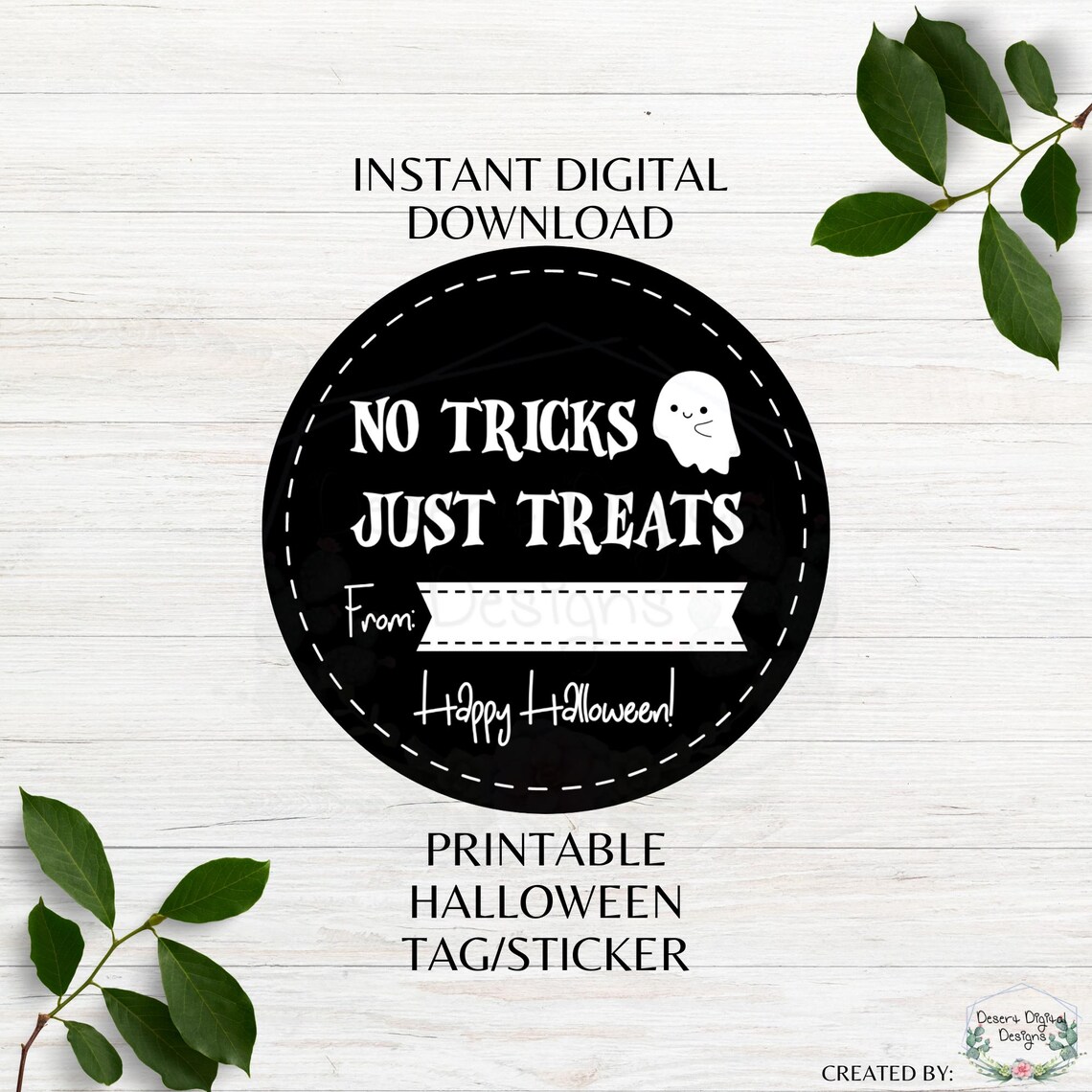Printable No Tricks Just Treats Happy Halloween Gift Tag Etsy