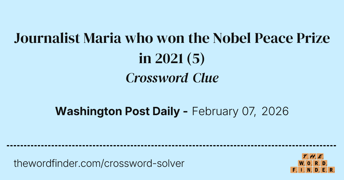 Journalist Maria who won the Nobel Peace Prize in 2021 Crossword Clue