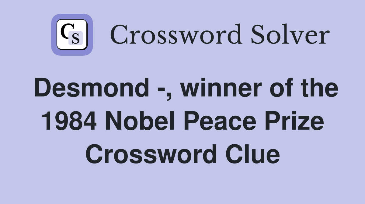Desmond winner of the 1984 Nobel Peace Prize Crossword Clue