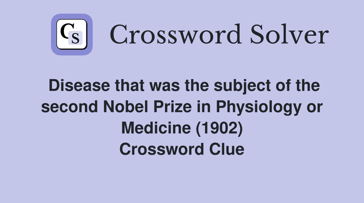 Disease that was the subject of the second Nobel Prize in Physiology or