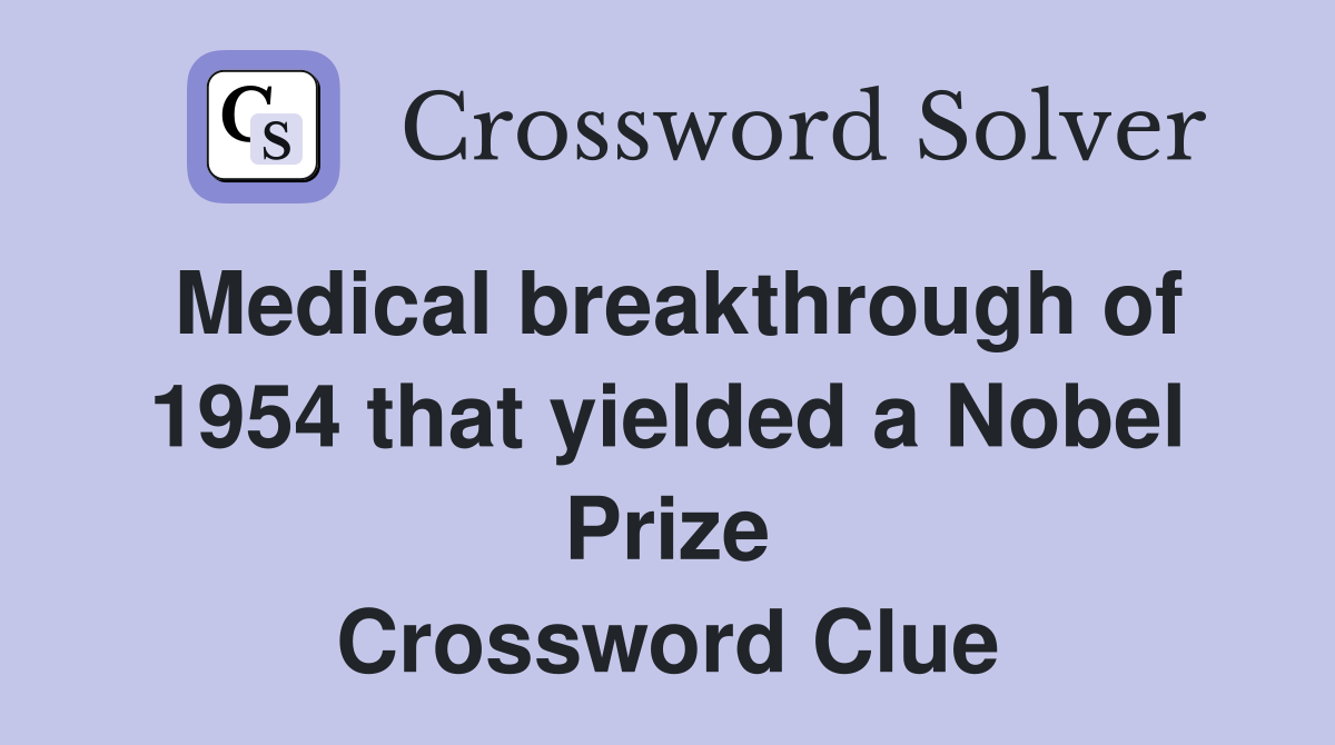 Medical breakthrough of 1954 that yielded a Nobel Prize Crossword