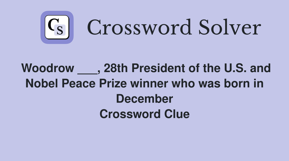 Woodrow 28th President of the U S and Nobel Peace Prize winner