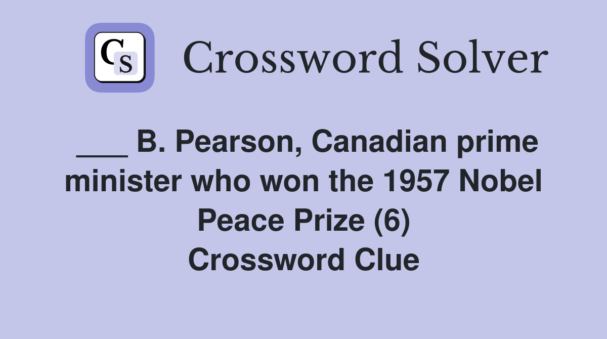 B Pearson Canadian prime minister who won the 1957 Nobel Peace Prize