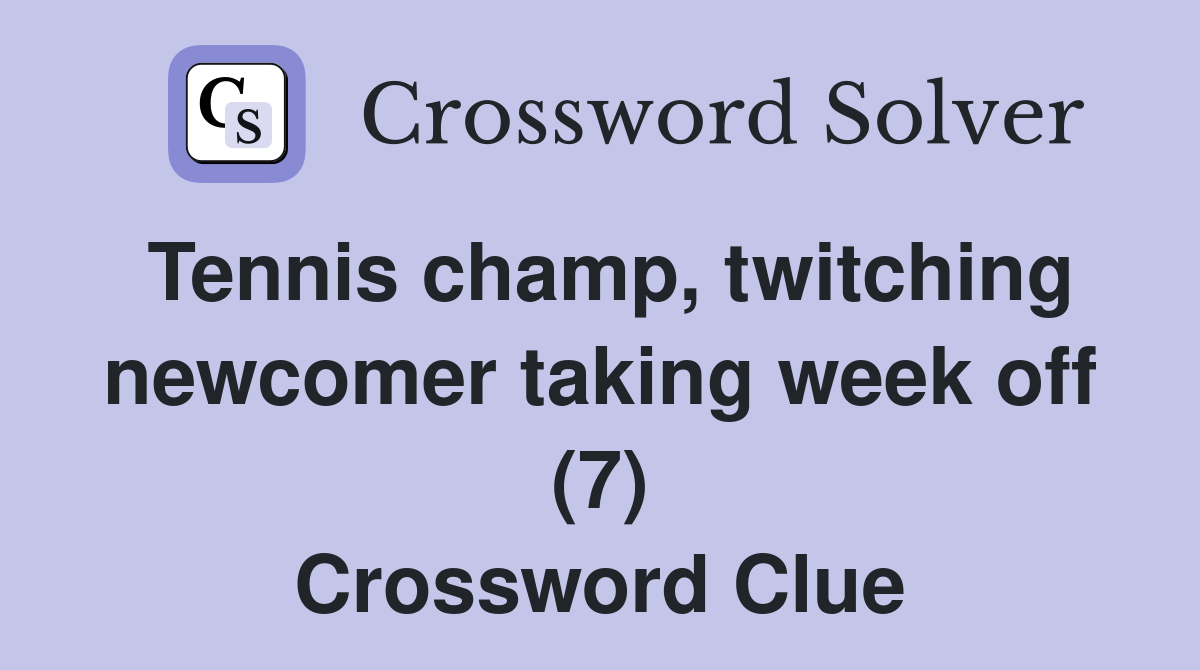 Tennis champ twitching newcomer taking week off (7) Crossword Clue