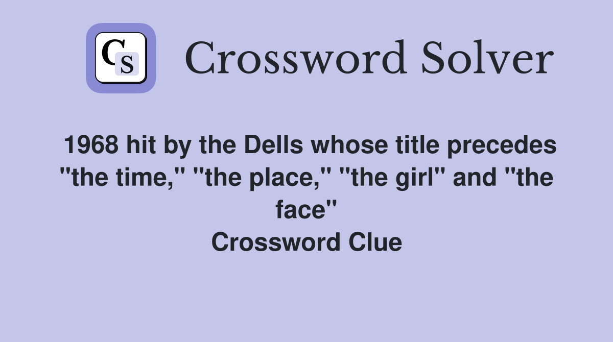1968 hit by the Dells whose title precedes quot the time quot quot the place