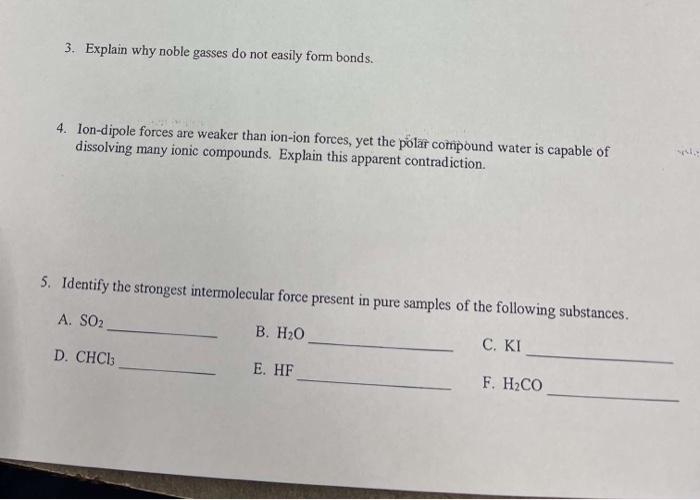 Solved 3 Explain why noble gasses do not easily form bonds Chegg com
