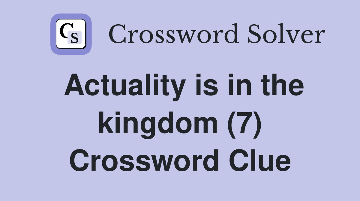 Actuality is in the kingdom (7) Crossword Clue Answers Crossword Solver