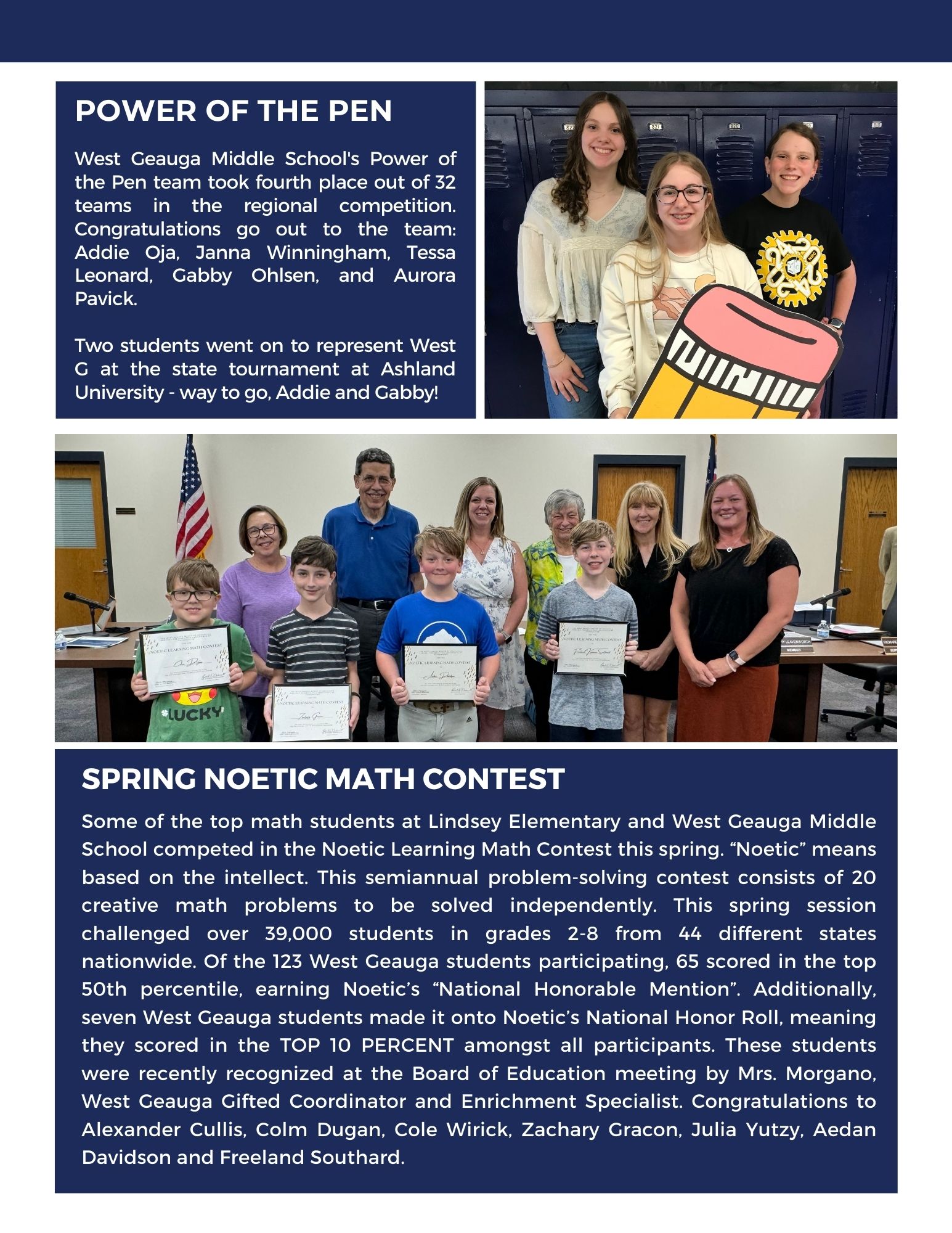 NOETIC Math Learning Contest West Geauga Local Schools