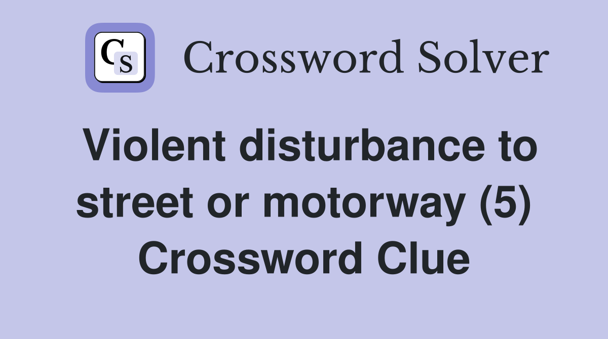 Violent disturbance to street or motorway (5) Crossword Clue Answers
