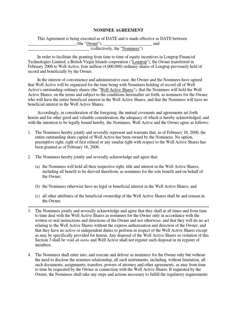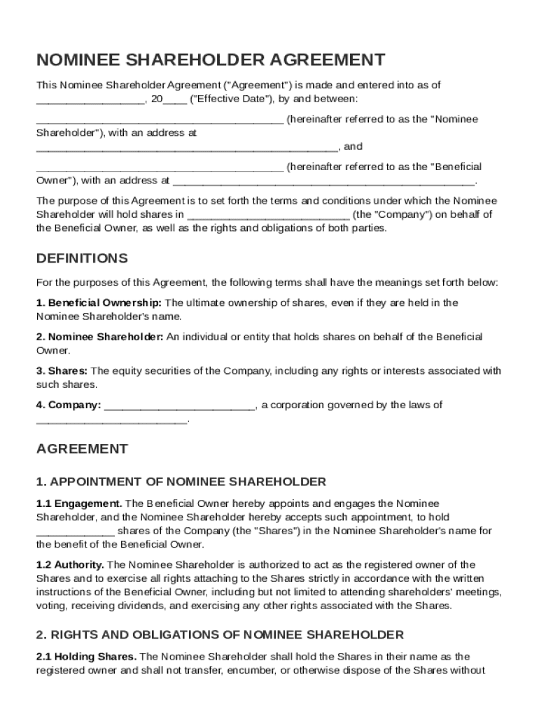 Nominee Shareholder Agreement Template: Fill out sign online DocHub