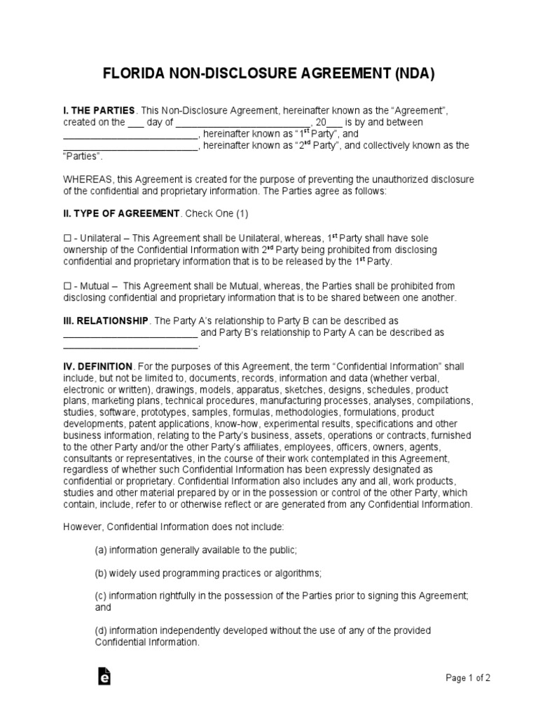 Download Florida Non disclosure Agreement Template ⋆ Online Templates