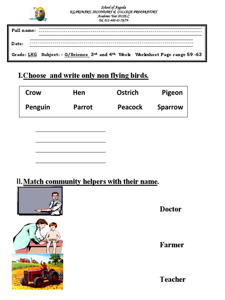 Find Non Flying Birds and Match Community Helpers in this School