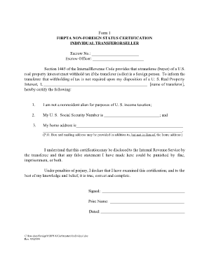 FIRPTA Certificate of Non Foreign Status Fill Out Sign Online and